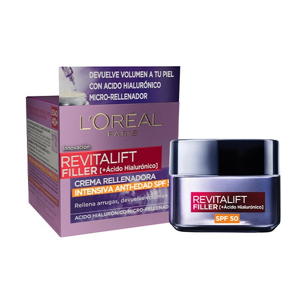 Creme preenchedor intensivo com Ácido Hialurônico e SPF 50, que devolve volume e protege sua pele com um único gesto.