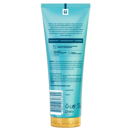 O condicionador H&S DERMAXPRO proporciona-lhe um couro cabeludo hidratado e sem caspa (caspa visível, com uso regular) e fibras capilares mais fortes.