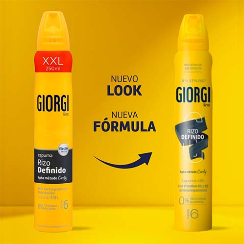 Prueba la Espuma Rizos Definidos Control 48h de Giorgi, la espuma para definir y controlar incluso los rizos más rebeldes durante más tiempo y sin encrespamiento gracias a sus activos acondicionadores, durante 48 horas. Con Vitaminas B3 y B5 que protegen y cuidan el cabello para que luzca hidratado, brillante y suave.
