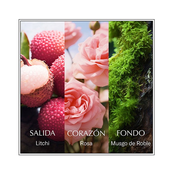 Desenhado para agradar seus sentidos com uma mistura viciante de toranja madura, lichia e rosa aromática e cremosas notas de almíscar, é uma fragrância que irradia feminilidade e elegância.