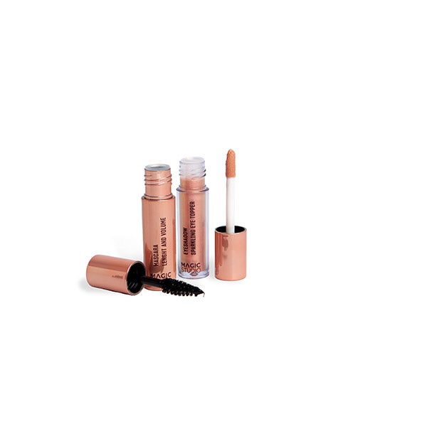 Um conjunto de presente Rose Quartz perfeito para levar o brilho e glamour para onde você quiser. Com esta mini máscara de cílios e sombra líquida com glitter, você estará pront@ para qualquer ocasião em qualquer lugar.