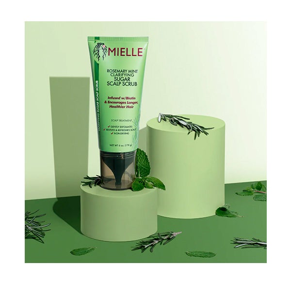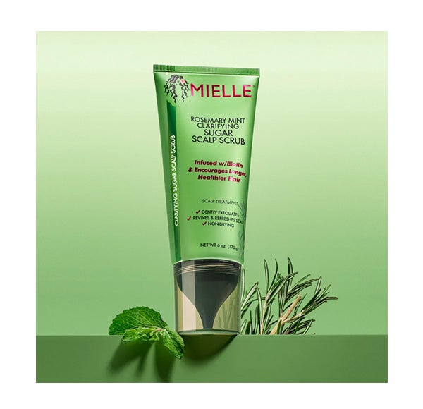 Rosemary Mint Clariifying Sugar Scalp Scrub utiliza grânulos de açúcar suaves para esfoliar e eliminar as impurezas. Este tratamento também elimina o acúmulo de gordura e produtos para refrescar e revitalizar o couro cabeludo.