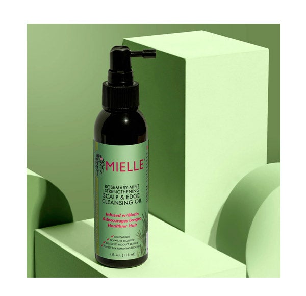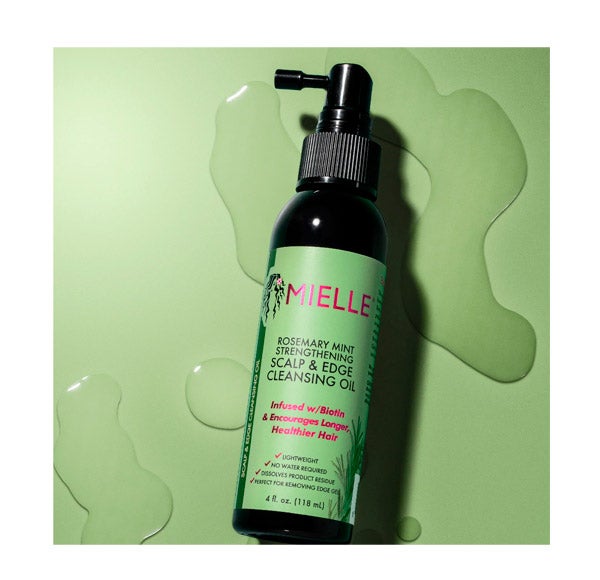 O óleo de limpeza para o couro cabeludo e cabelo com menta e alecrim da Mielle é uma fórmula de óleo de limpeza não oleosa e sem enxágue, potencializada com alecrim, menta, biotina e hamamélis que ajuda a dissolver o acúmulo de produto sem danificar o cabelo entre os dias de lavagem. Remove facilmente o acúmulo de gel nas bordas e outras impurezas da linha do cabelo e do couro cabeludo sem reversão. Limpa, prepara e reposiciona as bordas para que você possa prolongar o dia de lavagem.