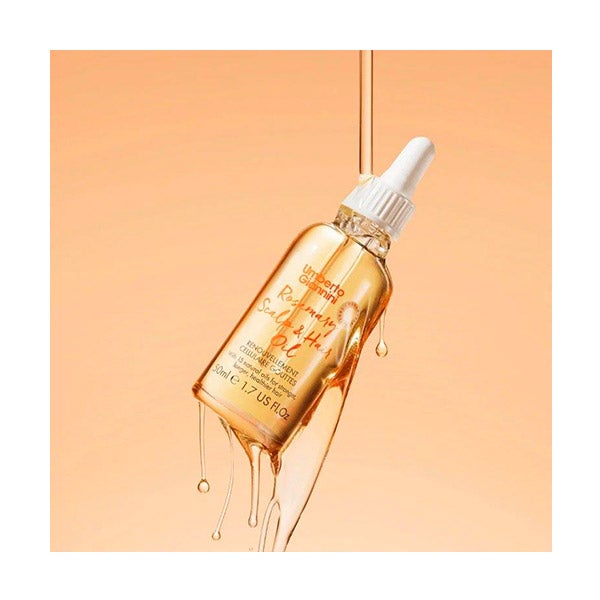 Óleo de Alecrim para Couro Cabeludo e Cabelo. Estimula o crescimento, acalma o couro cabeludo e nutre. Contém 16 óleos essenciais, incluindo os de menta e eucalipto, que estimulam os folículos capilares, proporcionam brilho e protegem do calor até 220°C. Perfeito para quem deseja melhorar a saúde do couro cabeludo e fortalecer o cabelo. Adequado para todos os tipos de cabelo, para conseguir um cabelo mais longo e saudável. Não danifica a cor.