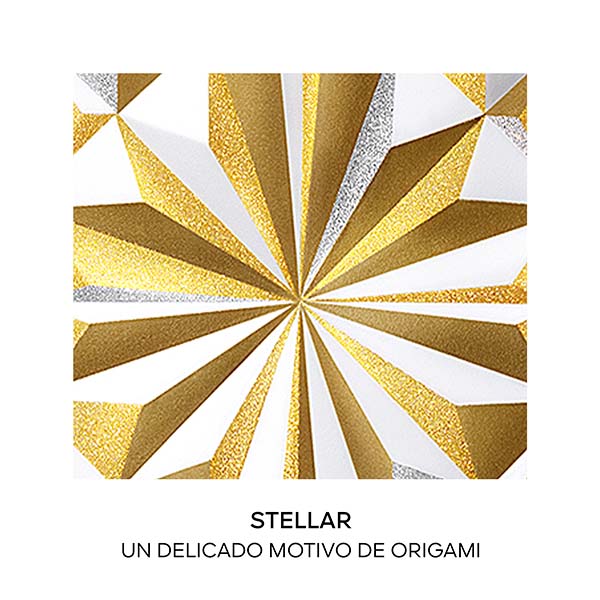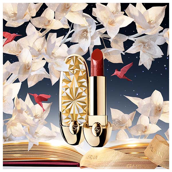 Este Natal, Rouge G apresenta um motivo ""origami"" inédito em tons dourados, prateados e brancos. Esta preciosa capa ecoa o conto natalino de papel da Guerlain, onde a magia ganha vida.
