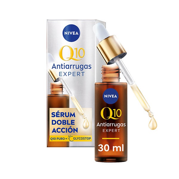 NIVEA Q10 Sérum Expert Antiarrugas Doble Acción 30ml: Aqua, Glycerin, Caprylic/Capric Triglyceride, Alcohol Denat., Cocoglycerides, Glyceryl Stearate Citrate, Butyrospermum Parkii Butter, Distarch Phosphate, Ubiquinone, 1-Methylhydantoin-2-Imide, Creatine, Hydroxyacetophenone, Xanthan Gum, Sodium Hydroxide, Phenoxyethanol, Pogostemon Cablin Oil, Parfum