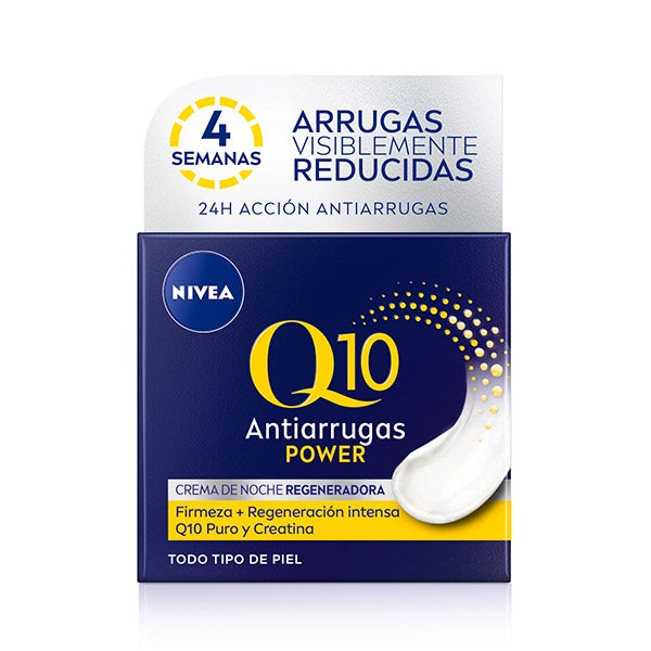 NIVEA Q10 Power Crema de Noche Antiarrugas y Firmeza 50ml: Aqua, Glycerin, Cetearyl Alcohol, Caprylic/Capric Triglyceride, Butyrospermum Parkii Butter, Cocoglycerides, Methylpropanediol, Hydrogenated Coco-Glycerides, Glyceryl Stearate Citrate, Cetearyl Isononanoate, Triisostearin, Squalane, Macadamia Integrifolia Seed Oil, Ubiquinone, Panthenol, Creatine, 1-Methylhydantoin-2-Imide, Pantolactone, Glyceryl Stearate, Xanthan Gum, Ethylhexylglycerin, Caprylyl Glycol, Sodium Hydroxide, Citric Acid, Phenoxyethanol, Parfum