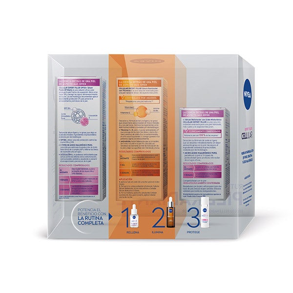NIVEA Cellular Expert Filler Sérum Fluido UV Diário SPF50+ 30ml. CELLULAR EXPERT FILLER SPF50+ Sérum Fluido UV Diário é uma solução eficaz para proteger a pele contra a exposição diária aos raios UV e corrigir os sinais de envelhecimento da pele. Os dermatologistas recomendam aplicar diariamente proteção UV para prevenir o envelhecimento prematuro da pele. Aplicar todas as manhãs e noites sobre a pele limpa.