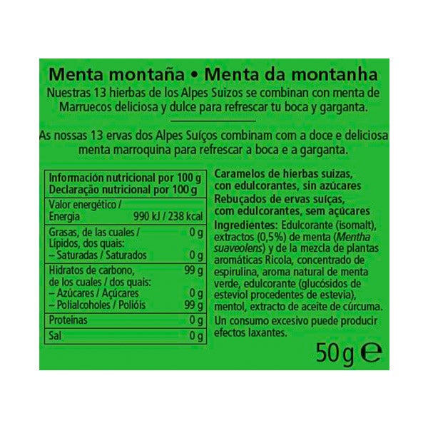 Caramelos de hierbas suizas, con edulcorantes, sin azúcares.