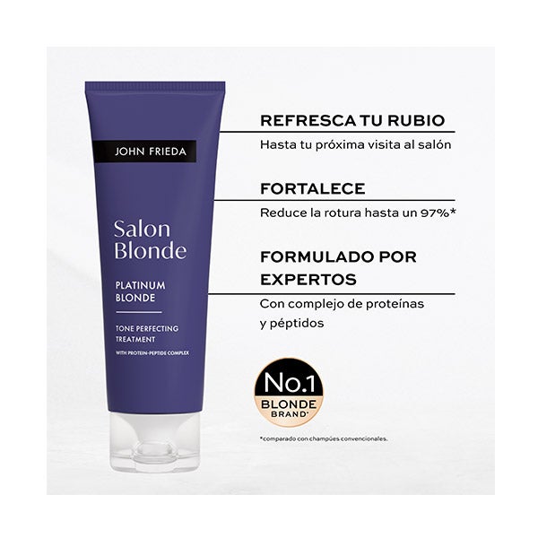 Para manter o tom loiro frio, use a cada 2 a 3 lavagens, alternando com seu condicionador habitual de John Frieda.