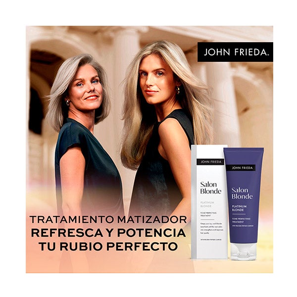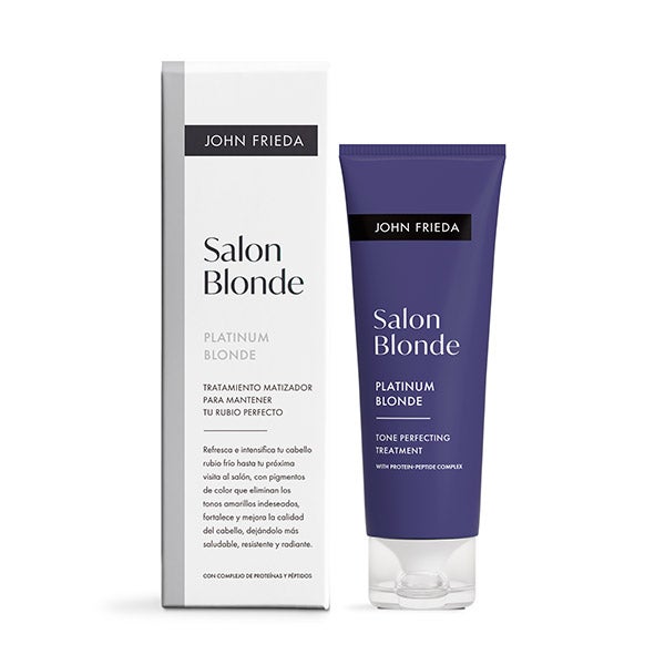 Realce a beleza do seu loiro frio entre as visitas ao salão com o Tratamento Matizador de Tom Salon Blonde Platinum de John Frieda. Formulado especialmente para refrescar os tons loiros claros e manter seu aspecto luminoso e profissional em casa.