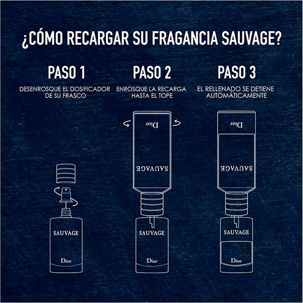 Agora recarregável, o formato de 100 ml do perfume Sauvage faz parte da iniciativa de ecoconcepção da Maison Dior. Fácil de usar, esta recarga ecoconcebida permite reutilizar o frasco do seu perfume, uma vez terminado.