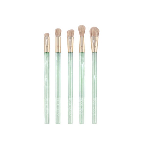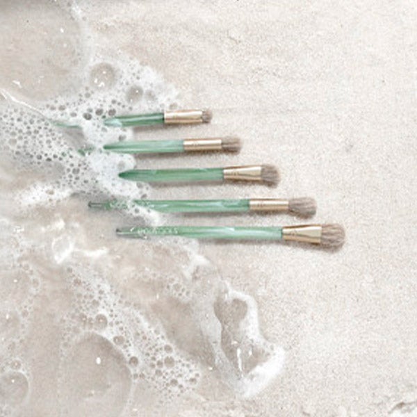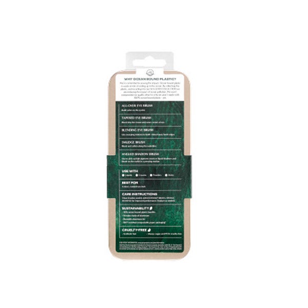 O conjunto de pincéis para sombras de olhos Sea Gems da EcoTools inclui 5 pincéis densos para maquiagem dos olhos e uma lata reutilizável para criar o look de olhos perfeito e guardar os pincéis. O conjunto de pincéis para sombras de olhos inclui o pincel para olhos integral, o pincel cônico para olhos, o pincel para esfumar olhos, o pincel para esfumar, o pincel para sombras em ângulo e uma lata reutilizável.