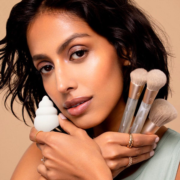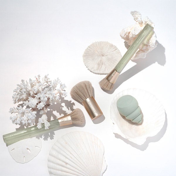 O conjunto de pincéis Sea Gems é fácil de limpar com nosso shampoo EcoTools Brush + Sponge para um melhor desempenho do pincel e da esponja de beleza.
