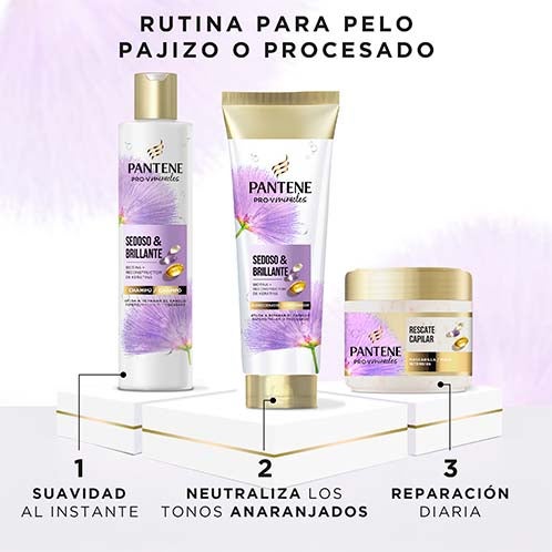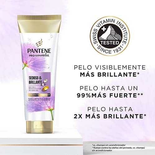 Sonha em ter um cabelo sedoso e suave? Com o condicionador Pantene Sedoso e Brilhante, você devolverá ao seu cabelo opaco e descolorido uma sensação de vida e brilho. Nossa fórmula com biotina e queratina reparadora contém uma maior concentração de Pro-V, e está desenhada para ajudar a reparar o cabelo tratado e deixá-lo irresistivelmente suave como a seda.