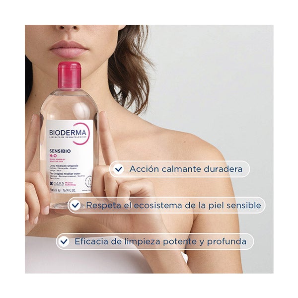 A água micelar dermatológica que limpa, acalma e remove a maquiagem da pele sensível.