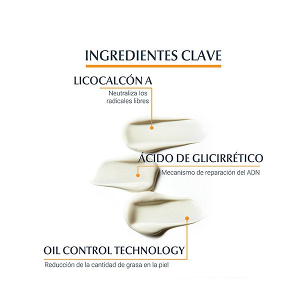 O protetor solar também estimula o mecanismo de reparação do DNA da pele e sua tecnologia Oil Control, com partículas matificantes, deixa um acabamento seco imediato.
