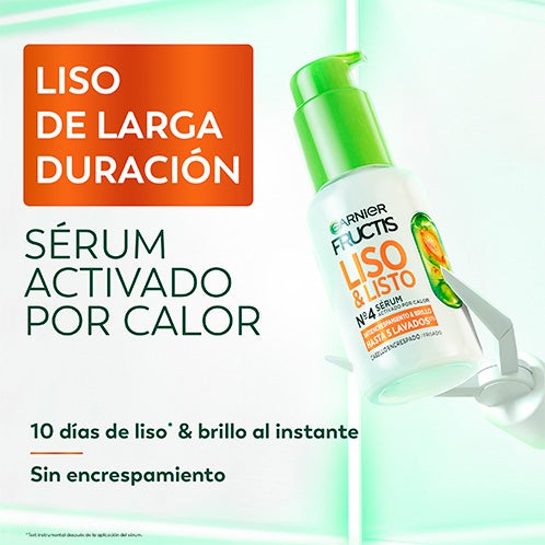 Garnier Fructis Nº4 Sérum Ativado por calor Liso & Pronto para cabelo frisado, proporciona até 10 dias de liso & brilho(1).
