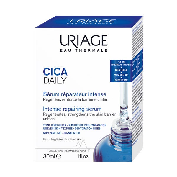 Cica Daily Sérum Reparador Intenso combina um potente complexo reparador e regenerador para reforçar as defesas da pele contra as agressões diárias: falta de conforto, imperfeições, vermelhidões e marcas cutâneas.