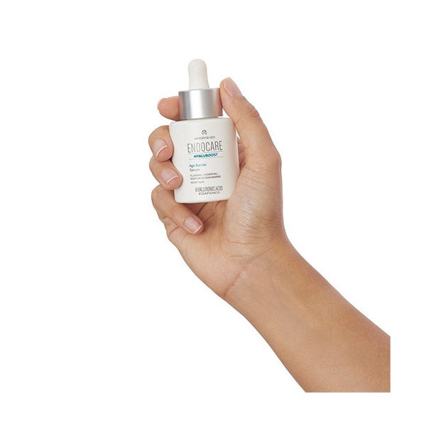 Endocare Hyaluboost Age Barrier Sérum é um tratamento antienvelhecimento ativador e reparador da função barreira, para recuperar a função barreira enfraquecida por tratamentos agressivos, agentes agressores externos (poluentes, radiação UV, etc.), o uso excessivo de produtos hidratantes ou como sintoma da idade.