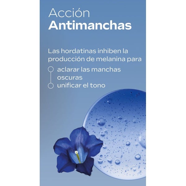 Graças às hordatinas, a fórmula inibe especificamente a produção de melanina, ajudando a reduzir e clarear as manchas pigmentares existentes e a prevenir sua reaparição.