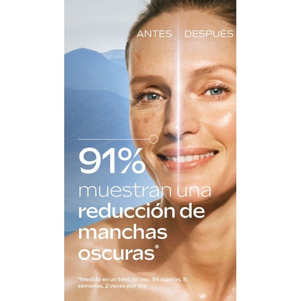 Sua formulação inovadora reduz visivelmente todos os tipos de manchas pigmentares — manchas de idade, solares e marcas pós-acne — ao mesmo tempo que melhora a firmeza e elasticidade da pele. O resultado é um tom mais uniforme, luminoso e rejuvenescido.