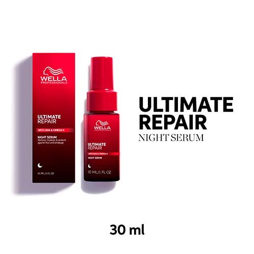 Wella Professionals Ultimate Repair é o sistema de cuidado capilar profissional projetado para nutrir e suavizar cabelos secos, opacos e frisados. Aprovado por profissionais. Você passa um terço da sua vida dormindo. Imagine se você pudesse usar esse tempo para reparar seu cabelo. O Sérum Noturno Ultimate Repair da Wella Professionals permite fazer exatamente isso, para que você possa acordar com um cabelo pronto pela manhã, graças ao triplo poder de uma fórmula leve que proporciona reparação, hidratação e proteção ao cabelo seco e danificado.