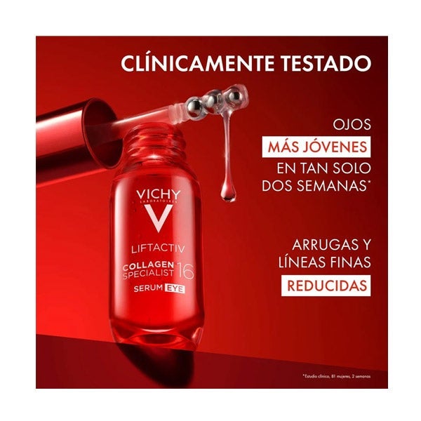 LIFTACTIV COLLAGEN SPECIALIST 16 SÉRUM OLHOS é o primeiro sérum para o contorno dos olhos com tecnologia Co-Bonding [Ramnosa+Peptídeos+Maitake] para potencializar e unir todas as famílias de colágeno.