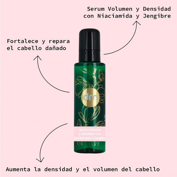Es un densificador capilar de última generación que rejuvenece la fibra capilar, reparando y rellenando las zonas dañadas. Está diseñado para dar un acabado perfecto al peinado, proporcionando volumen y cuerpo al cabello sin apelmazarlo. Enriquecido con Niacinamida y Extracto de Jengibre, este serum ayuda a mantener el cabello hidratado y protegido durante todo el día.