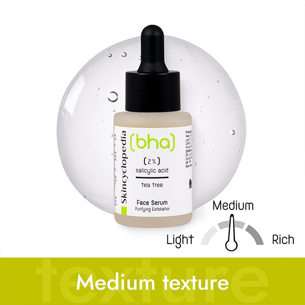Sérum facial para o tratamento das imperfeições com ácido salicílico e óleo de árvore de chá.