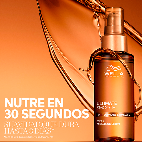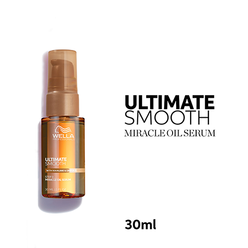 O óleo capilar Miracle Oil Serum da linha Ultimate Smooth da Wella Professionals faz parte da rotina profissional de cuidado capilar projetada para proporcionar nutrição e suavidade ao cabelo seco, crespo e sem brilho. Miracle Oil Serum é um sérum capilar delicado (com textura de óleo), que nutre profundamente o cabelo por dentro e por fora, deixando-o visivelmente mais suave e brilhante. Nutre o cabelo em 30 segundos, proporcionando suavidade que dura até 3 dias.