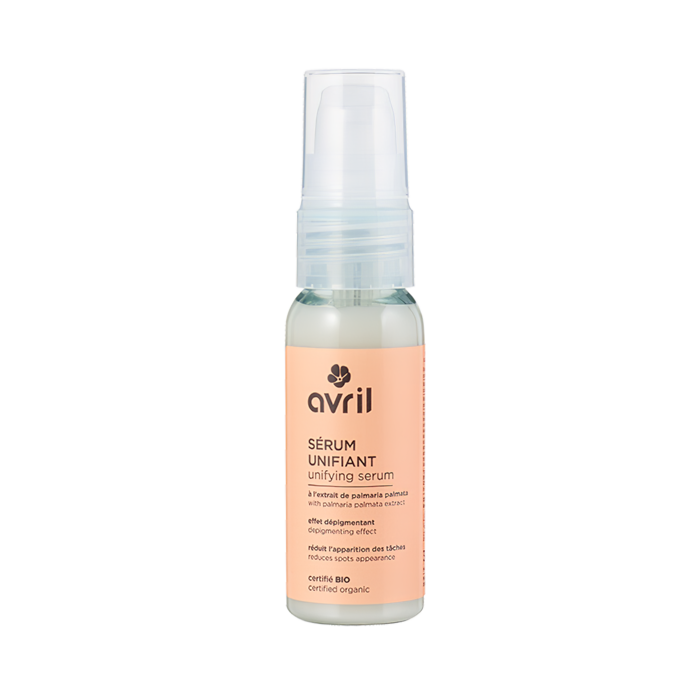 Aplique de manhã e à noite o sérum unificador ecológico certificado da Avril: graças às algas vermelhas e à flor de lírio branco com efeitos despigmentantes e clareadores contidos na sua fórmula, reduz o aparecimento de manchas, para uma pele perfeitamente uniforme.