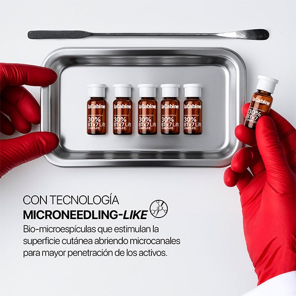 O Pack de 10 ampolas avançadas 30% BTx7 Lift oferece um tratamento completo de 10 dias inspirado em microagulhamento profissional e procedimentos de injeções antirrugas. Cada ampola contém um complexo de 7 peptídeos a 30% e tecnologia Microneedling-like, abre microcanais na pele, favorecendo a absorção profunda de ativos e ativando o processo antirrugas. A pele fica mais firme, lisa e luminosa desde a primeira aplicação, oferecendo uma alternativa tópica eficaz e não invasiva aos tratamentos médico-estéticos.