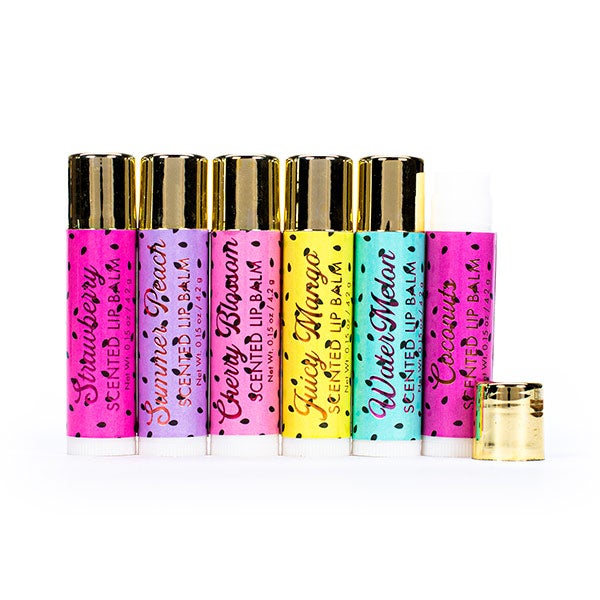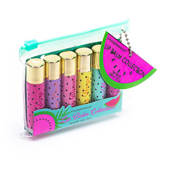 Contém seis bálsamos labiais com diferentes sabores a Melancia.