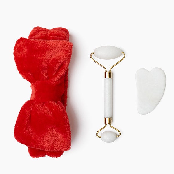 Descubra os benefícios da massagem facial com este conjunto. Inclui tiara, pedra gua sha e rolo facial, perfeitos para melhorar a circulação, prevenir a flacidez e tonificar os músculos faciais. Ideal para a sua rotina de beleza.