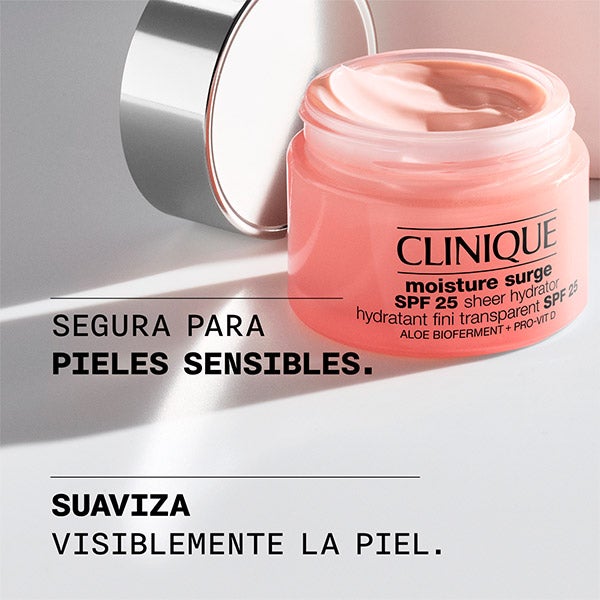 Moisture Surge™ SPF 25 Sheer Hydrato é um hidratante leve e cremoso que proporciona hidratação mais proteção solar translúcida, mesmo para tons de pele mais escuros. Protege contra os raios UVA/UVB para ajudar a manter a luminosidade do sol sem apagar a pele.