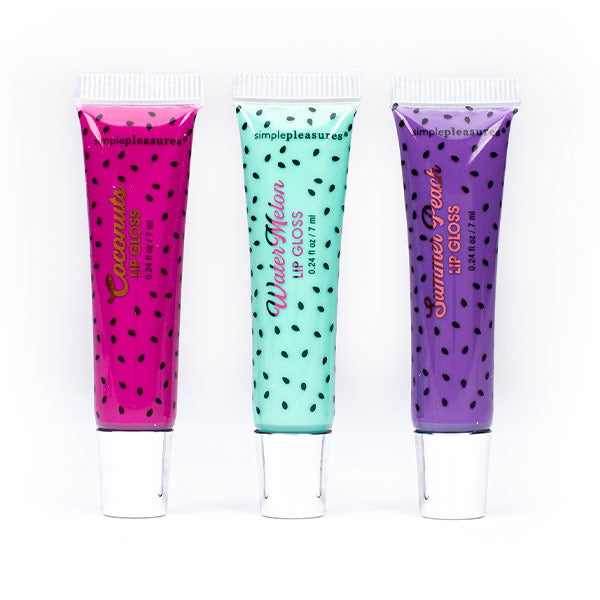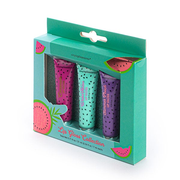 Conjunto que inclui 3 lip gloss, com sabor a Melancia.
