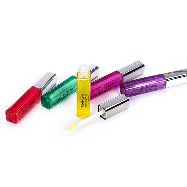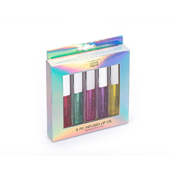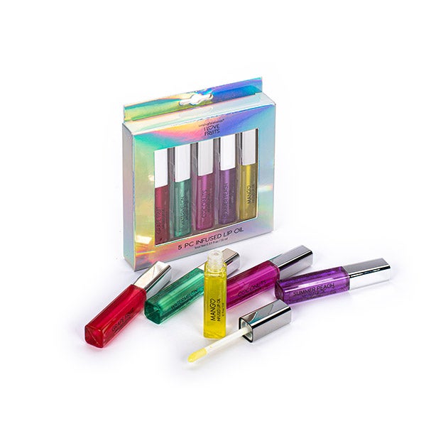 Conjunto de 5 óleos labiais com sabor a frutas, que hidratam seus lábios profundamente e lhes conferem uma aparência jovem e suculenta.