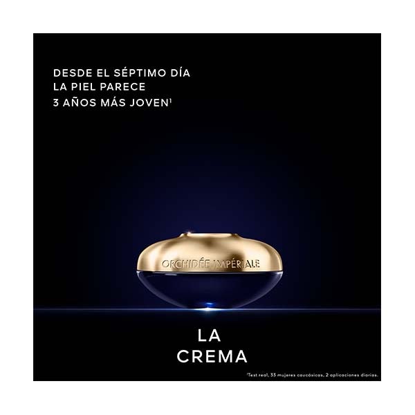 La Crema Orchidée Impériale es un tratamiento completo excepcional que concentra todo el poder de alta regeneración del extracto molecular Orchid Totum™. Ayuda a regular la respiración celular y favorece la regeneración de la piel. Además, actúa por primera vez sobre una enzima que favorece la longevidad para mantener el aspecto joven de la tez durante más tiempo. La piel luce un aspecto visiblemente más joven de forma duradera.