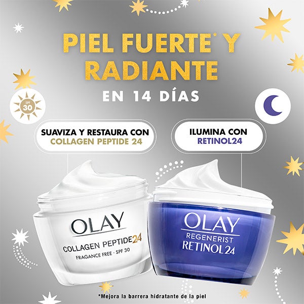 COLLAGEN PEPTIDE 24: revela una piel visiblemente más fuerte y radiante en 14 días con la crema de día Olay Regenerist Collagen Peptide24 con SPF 30. ¿Sabías que el colágeno es un componente esencial de la piel que mantiene la estructura de la piel? Con la edad, en realidad a partir de los 30 años, la cantidad de colágeno presente en la piel disminuye, por lo que la piel empieza a mostrar signos de fatiga.