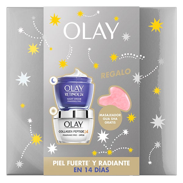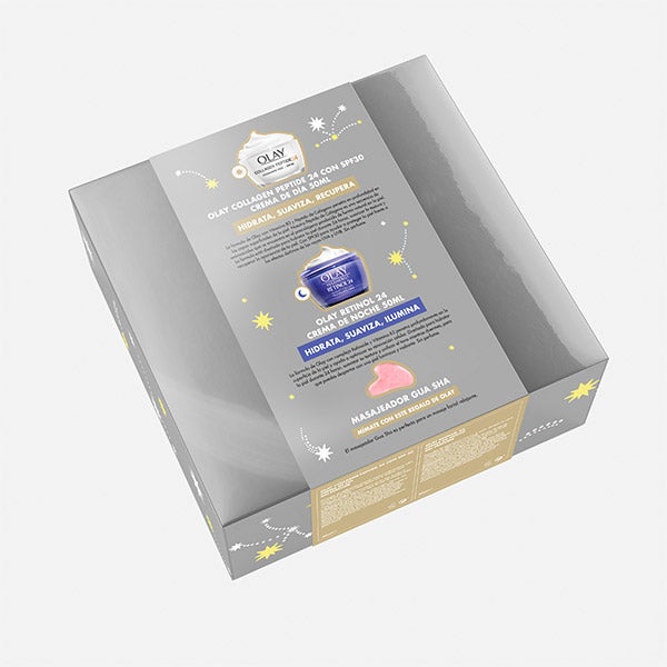 ¿Buscas el regalo perfecto? En OLAY te lo ponemos fácil con este estuche compuesto por una crema de día y una crema de noche, que incluye un masajeador guasha de regalo para elevar tu rutina de skin care al siguiente nivel. Si es para ti, te guardamos el secreto. Disfruta de una piel fuerte y radiante en 14 días con este super pack de OLAY.