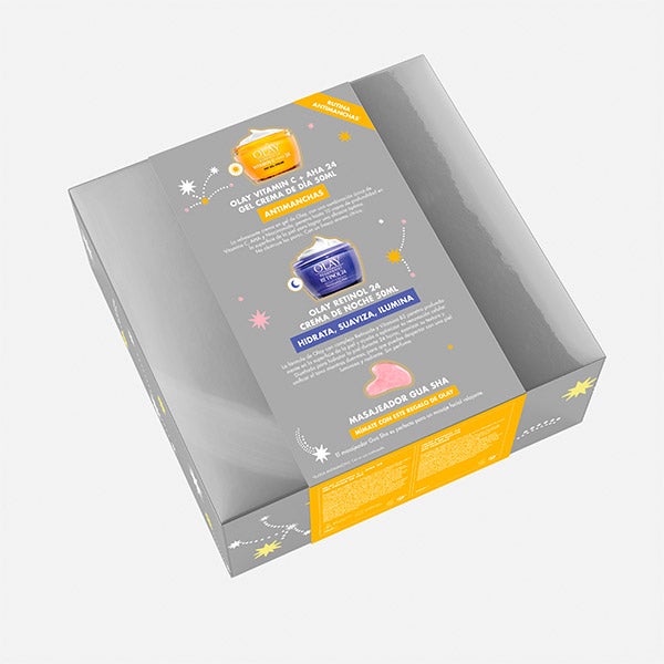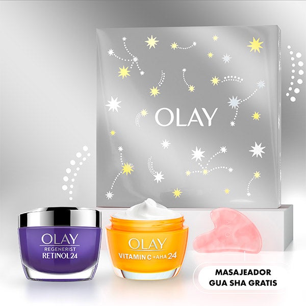 Na OLAY facilitamos para você com este estojo composto por um creme de dia e um creme de noite, que inclui um massageador guasha de presente para elevar sua rotina de skin care ao próximo nível. Se é para você, guardamos o segredo.