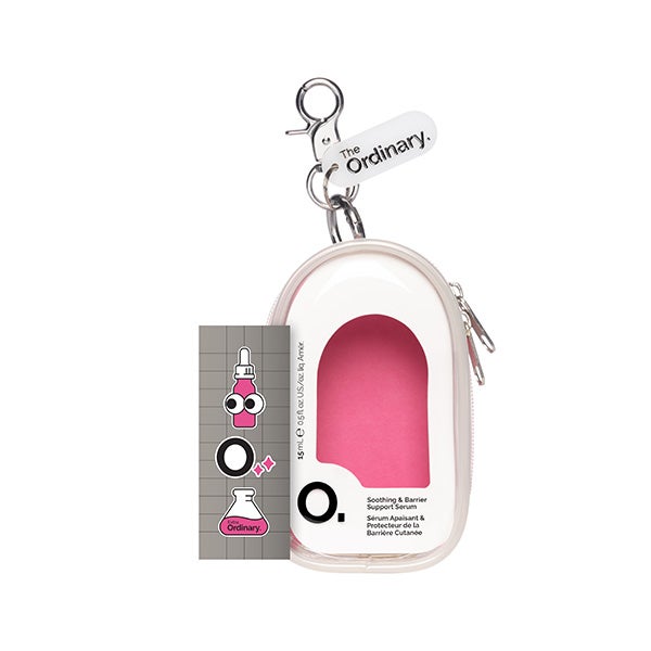 O conjunto Soothing & Barrier Support Serum inclui uma nécessaire com chaveiro reutilizável de presente para uma rápida reparação da pele em movimento. Personalize sua nécessaire Soothing & Barrier Support Serum com os adesivos de presente incluídos no conjunto.