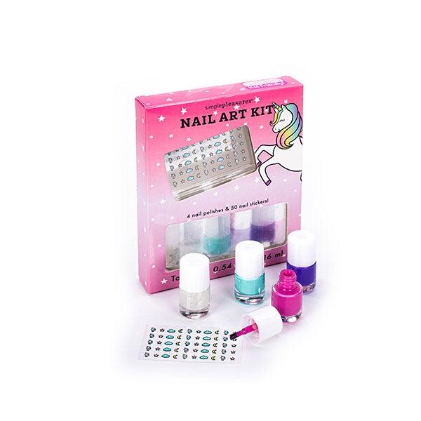 Kit para decoração de unhas que inclui 4 esmaltes com cores muito veranis e sticks de unhas para fazer da sua manicure uma obra de arte.