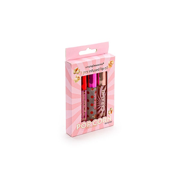 Contém 3 óleos labiais com sabores doces, que proporcionam hidratação e brilho.