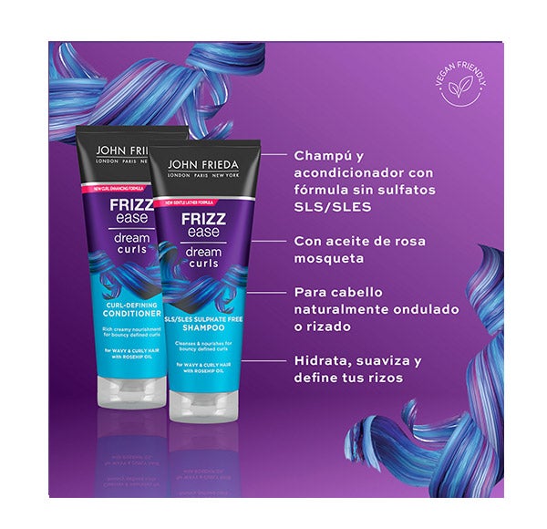 O shampoo Dream Curls ajuda a conseguir cachos definidos e macios, como se tivessem acabado de sair do salão.