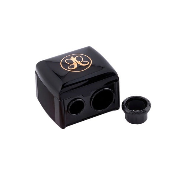 O apontador Anastasia Beverly Hills é um apontador três em um para lápis de maquiagem, com duas lâminas de aço inoxidável e à prova de ferrugem, que ajudam a manter a precisão dos seus produtos em lápis.