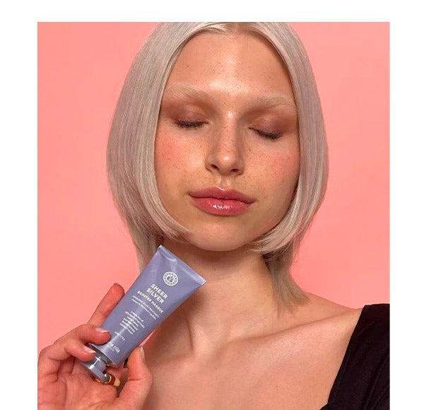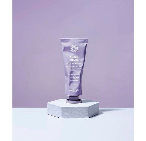 Depois de usar o shampoo Maria Nila Sheer Soft, aplique a máscara potencializadora Maria Nila Sheer Silver no meio e nas pontas. Deixe agir por 3 minutos e enxágue abundantemente.