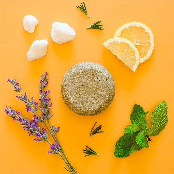 Sodium Cocoyl Isethionate (Coconut origin), Cocos Nucifera Oil (Coconut Oil), Aqua (Thermal Water), Camellia Sinensis Leaf Extract, Coco-Caprylate/Caprate, Acacia Concinna Fruit Powder (Shikakai powder), Butyrospermum Parkii Butter* (Shea Butter), Betaine, Cetearyl Alcohol, Behentrimonium Methosulfate, Spirulina Maxima Powder (Spirulina powder), Simmondsia Chinensis Seed Oil (Jojoba Oil), Hydrolized Oat Protein, Lamium Album Extract, Artemisia Abrotanum Flower/Leaf/Stem Extract, Mentha Piperita Oil*, Rosmarinus Officinalis Leaf Oil*, Cedrus Atlantica Wood Oil*, Citrus Limon Peel Oil*, Lavandula Angustifolia Oil*, Glycerin, CI 75810, Limonene**, Linalool**, Citral*, Geraniol**, Coumarin**