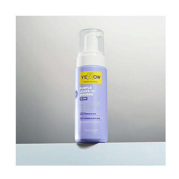 Espuma sedosa anti-amarelo. Potenciado com Bond Complex e Açaí. Concebido para cabelos loiros frios e gris. Fórmula vegana sem ingredientes de origem e derivação animal. Mousse leave-in neutralizante, antiamarelo e hidratante, que deixa o cabelo brilhante, hidratado e fácil de pentear.